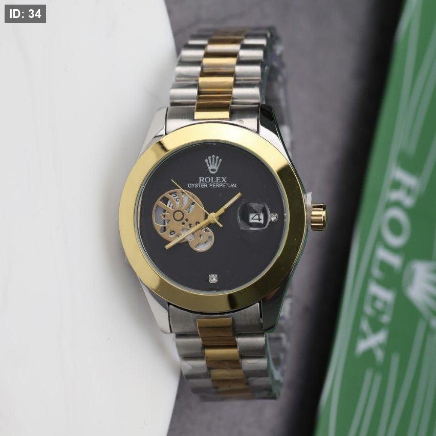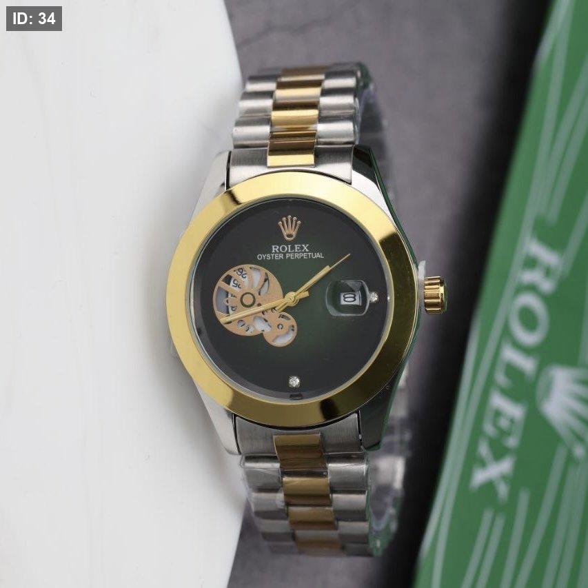ساعة Rolex Oyster Perpetual بتصميم فاخر يجمع بين البساطة والأناقة. تتميز بلمسة ميكانيكية مكشوفة تضيف طابعًا عصريًا مميزًا