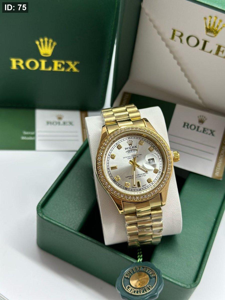ساعة Rolex Day-Date الفاخرة بتصميم أنيق ، تجمع بين الفخامة والدقة بتفاصيل راقية تعكس الأسلوب العصري المميز من رولكس